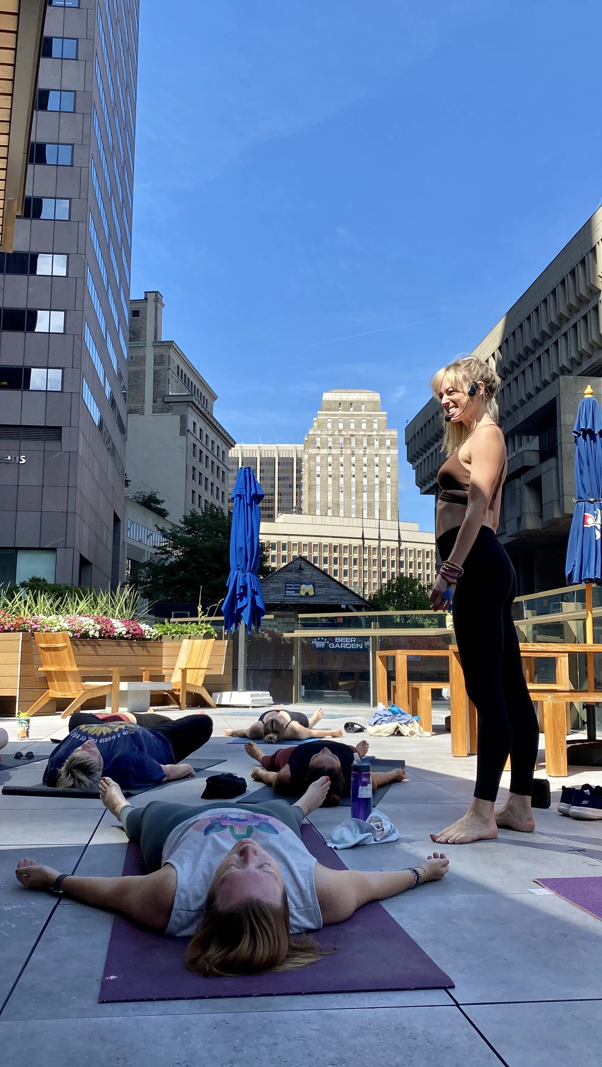 I’ve been teaching yoga since 2017, and mindful fitness, primarily in the form of yoga sculpt, since the year after. I’ve been obsessed with music since REM lost their religion and Lisa Loeb said “I do.” The combination of vinyasa style movement to powerful lyrics and music that beats my heart like a drum has been an integral part of my yoga practice, healing and quest to find and create magic in this world. I’ve always envisioned my yoga teaching as a pathway to building a community that is more susceptible to awe and authentic conversation than the average human. Together, I see us creating space in our bodies, peace in our minds, confidence and connection in our lives…and I’m walking down the street with a boombox on my shoulder, leading the way. Thanks for being here. Let’s create this together.