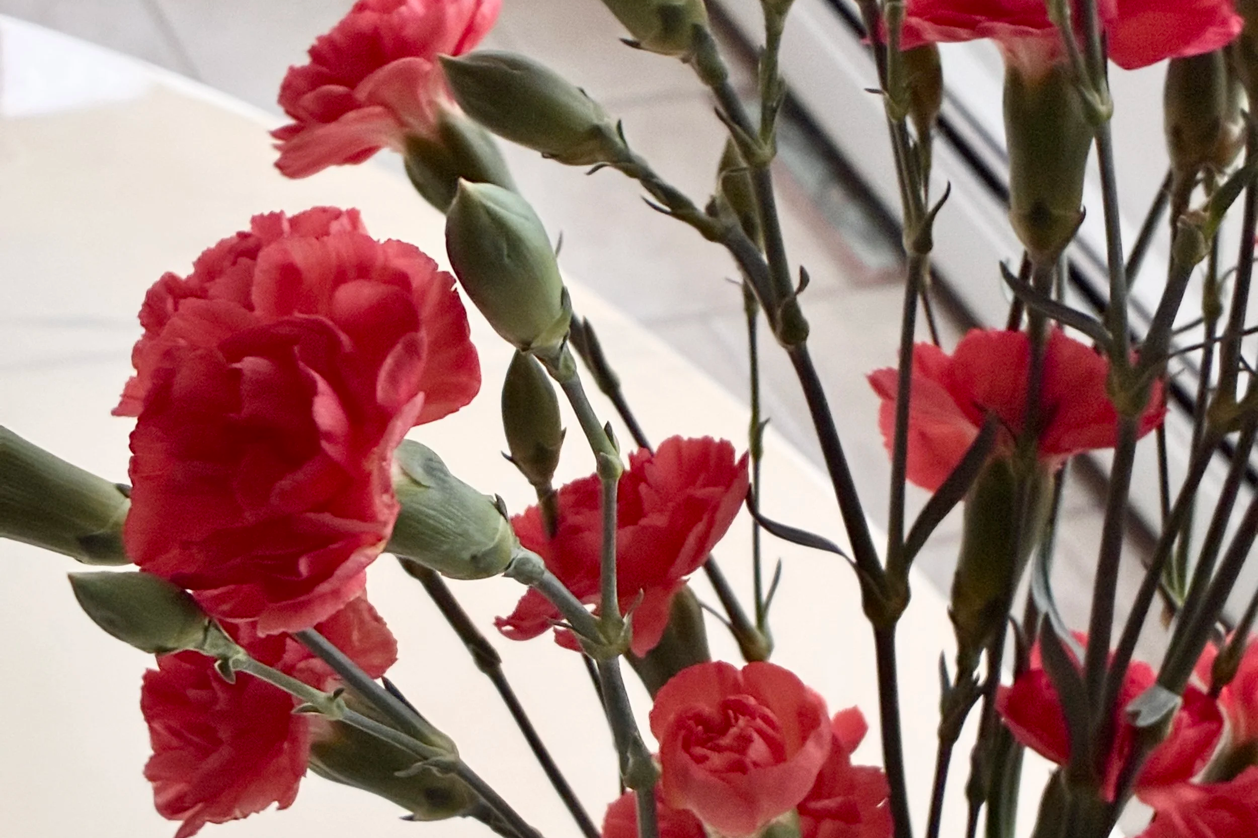 Last night my almost-four year old was admiring the coral carnations I have in a vase - a little more orange than pink - my favorite color. He called attention to the buds - the green bulbs that were floating next to the vibrant petals. I didn’t even notice there were buds on there until he pointed them out and told me that they were going to open soon.
